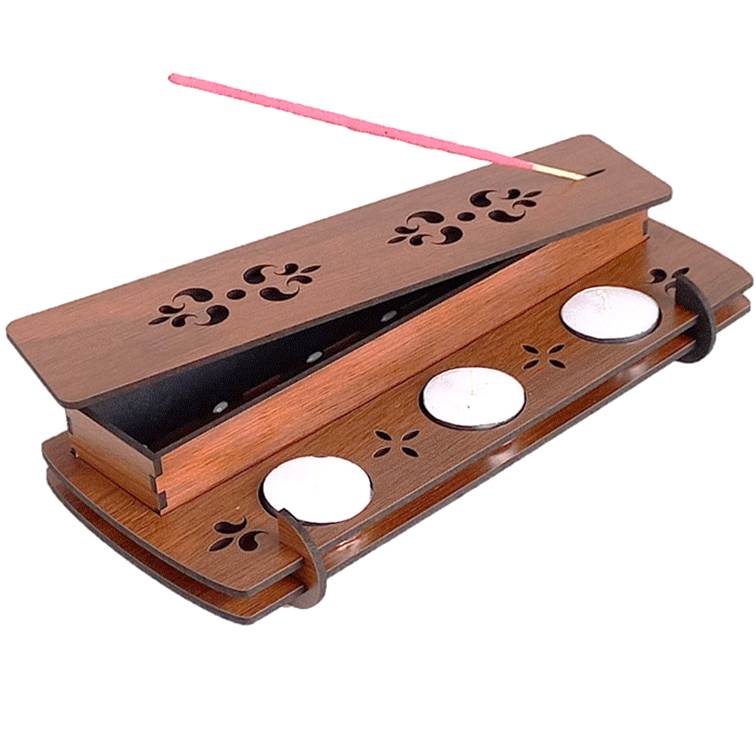 Caja Porta Sahumerios con 3 velitas LUXURY