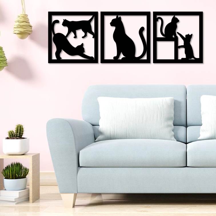 Cuadro calado decorativo Tríptico Mod. GATOS