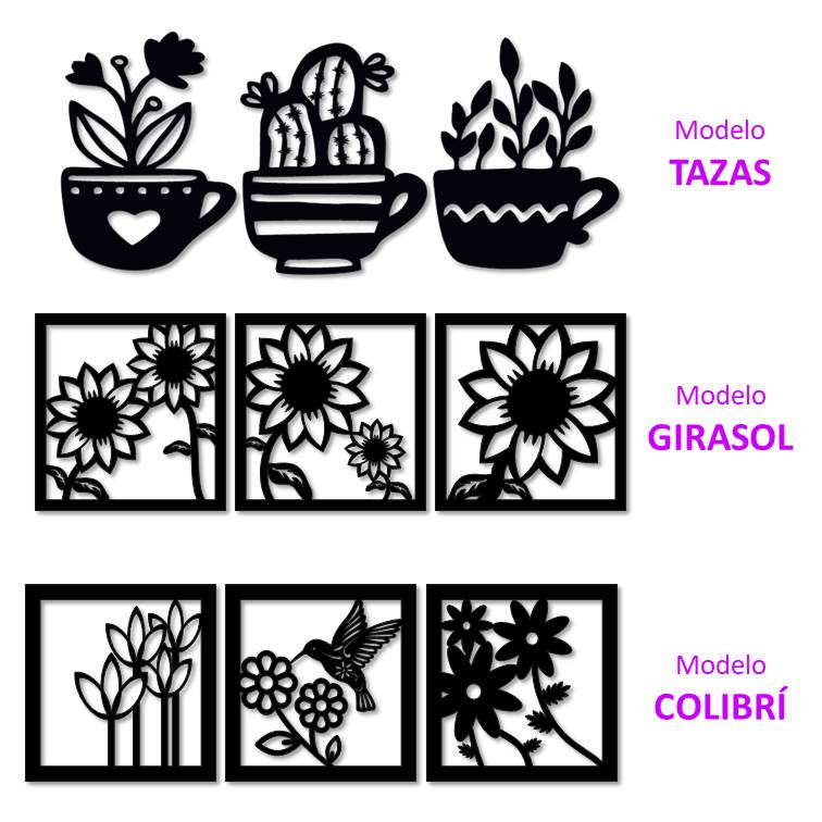 Cuadro calado decorativo Tríptico Mod. COLIBRÍ